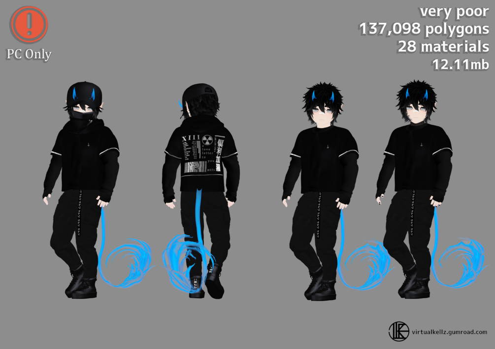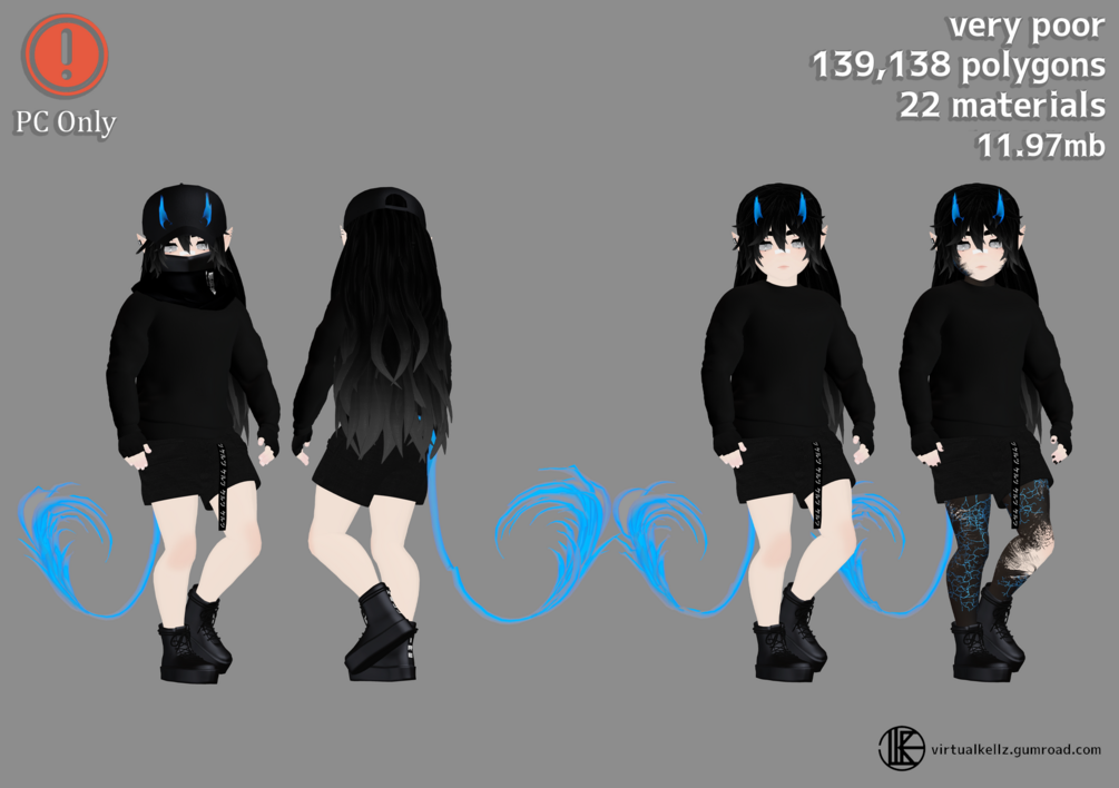 - Customize colors (4 hair colors, RGB hair emissions, RGB horns/tail, RGB exorcist body)